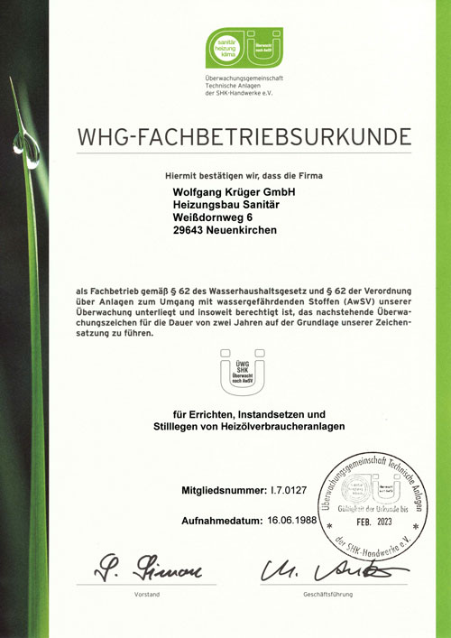 WHG-Fachbetriebsurkunde 1988